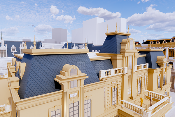 此為中東歐商務中心項目,此屋面系統(tǒng)采用的是新型建筑材料金屬復合瓦鋪設...